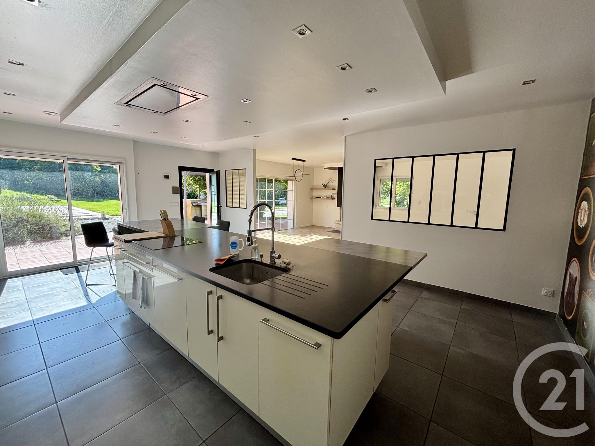 La maison principale séduit par ses volumes généreux et sa luminosité naturelle. Dès l'entrée, vous serez charmé par la vaste pièce de vie ouverte, composée d'un salon-séjour baigné de lumière, et d'une cuisine américaine entièrement équipée, idéale pour les moments de convivialité en famille ou entre amis.